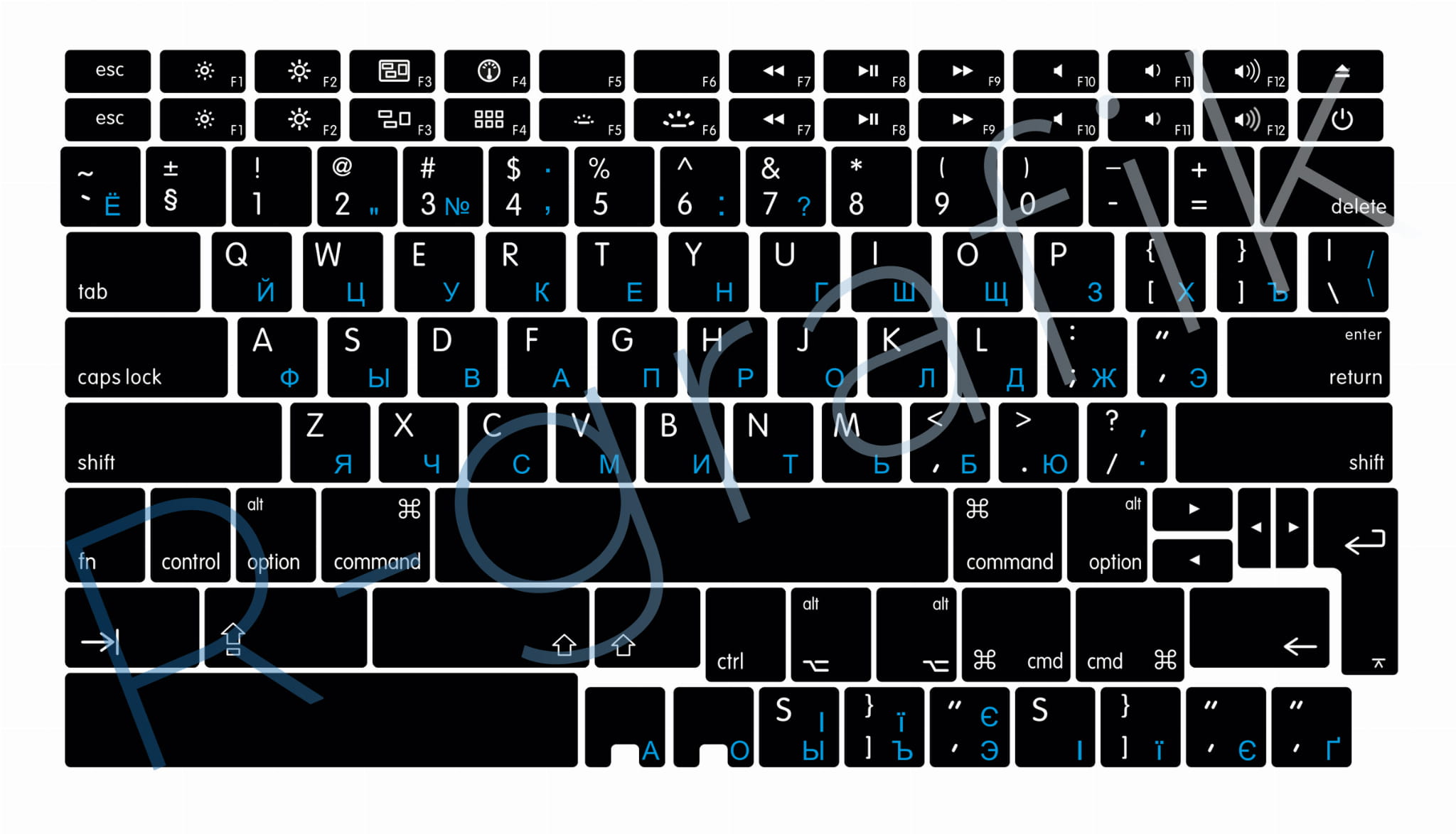TŁO CZARNE-LITERY NIEBIESKIE dodatkowe klawisze z wycięciami F i J