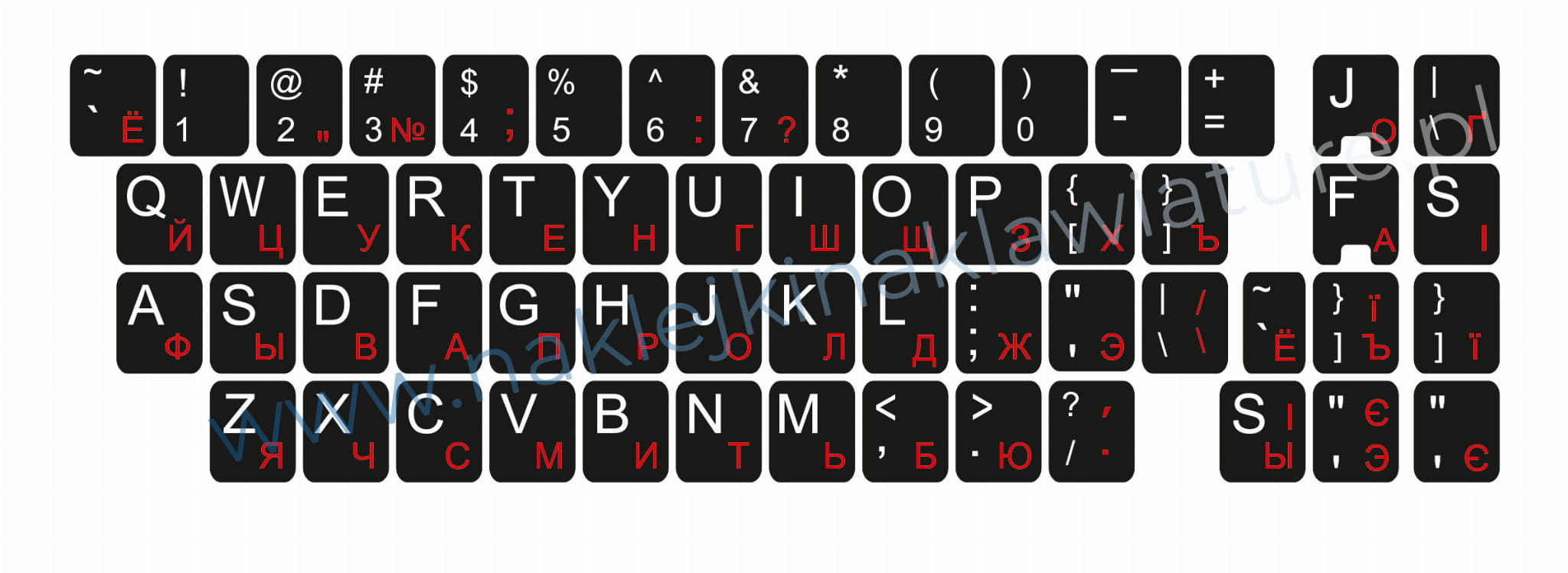 Naklejka QWERTY+CYRYLICA ROSYJSKA standardowa 11x13 RU