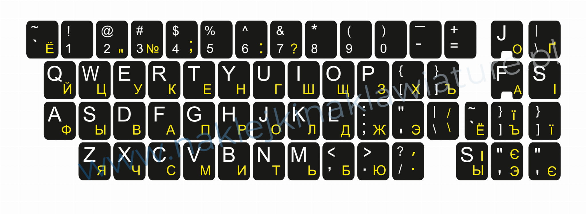 Naklejka QWERTY+CYRYLICA UKRAIŃSKA laminowana 11x13 ŻÓŁTA